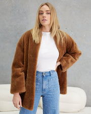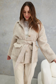 Phoenix Wool Faux Fur Hood Jacket Beige
