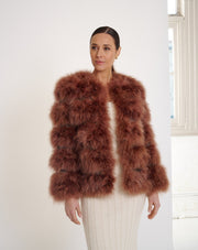 Phoenix Wool Faux Fur Hood Jacket Beige