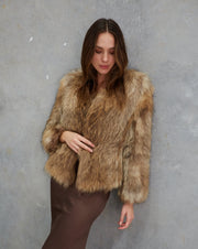Phoenix Wool Faux Fur Hood Jacket Beige