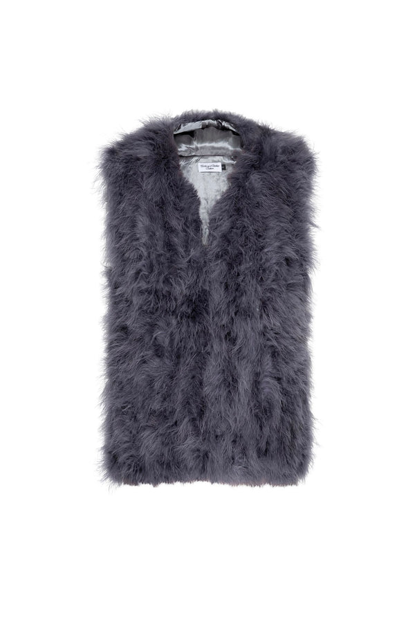 With a full feather hood to keep you warm and snug this edgy feather vest is a must have for the cooler months. Pair it with your fav denims or over a cute shift dress and kicks. Dare to be different.
